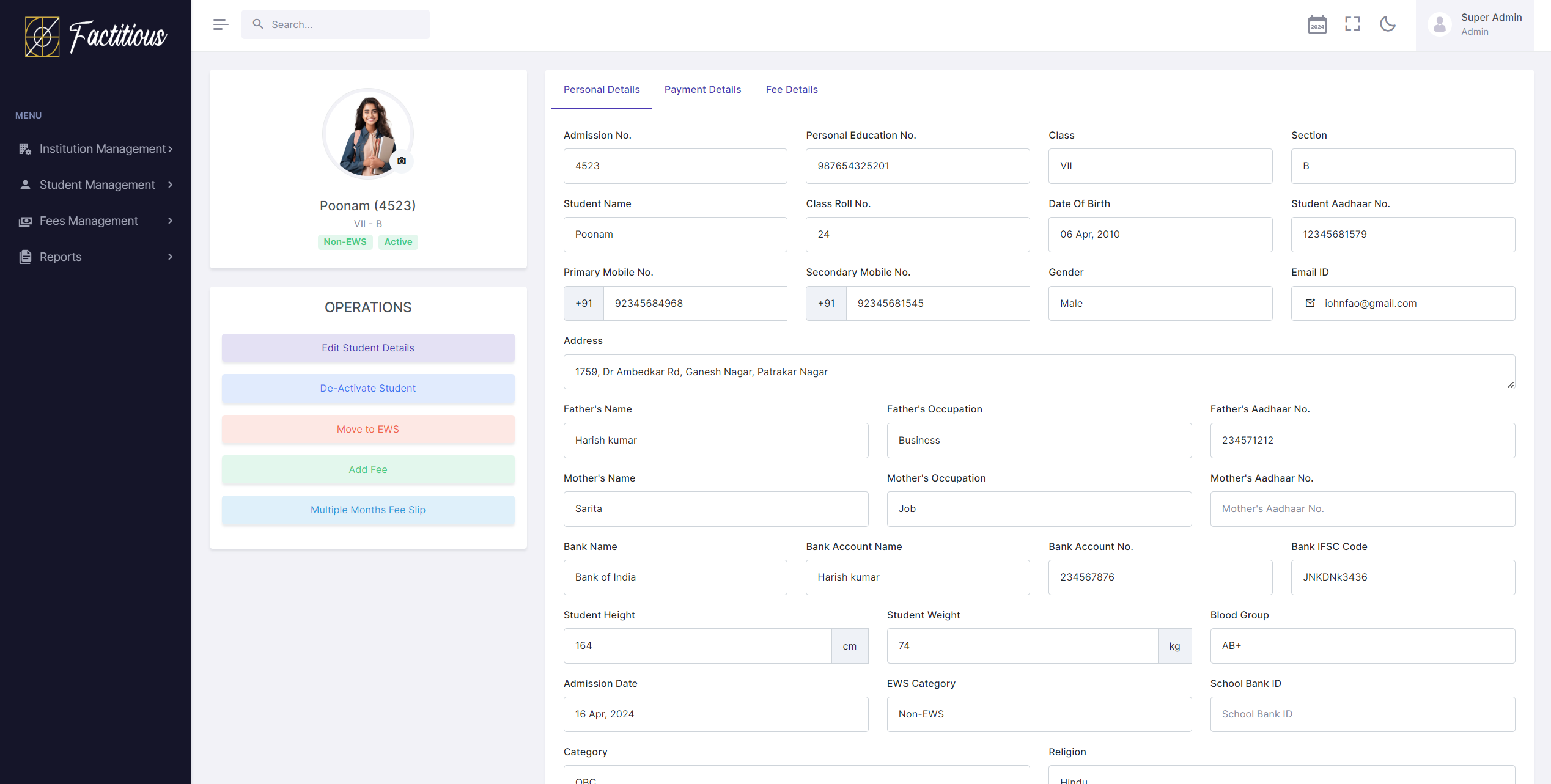 Our application comes with a separate portal for every user role. An admin portal with full controls, separate portals for Principal, Management staff, Accountants, and Receptionists.